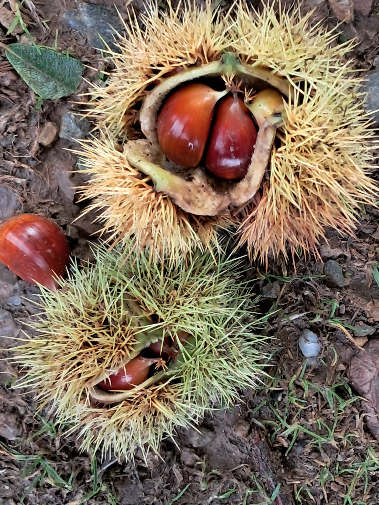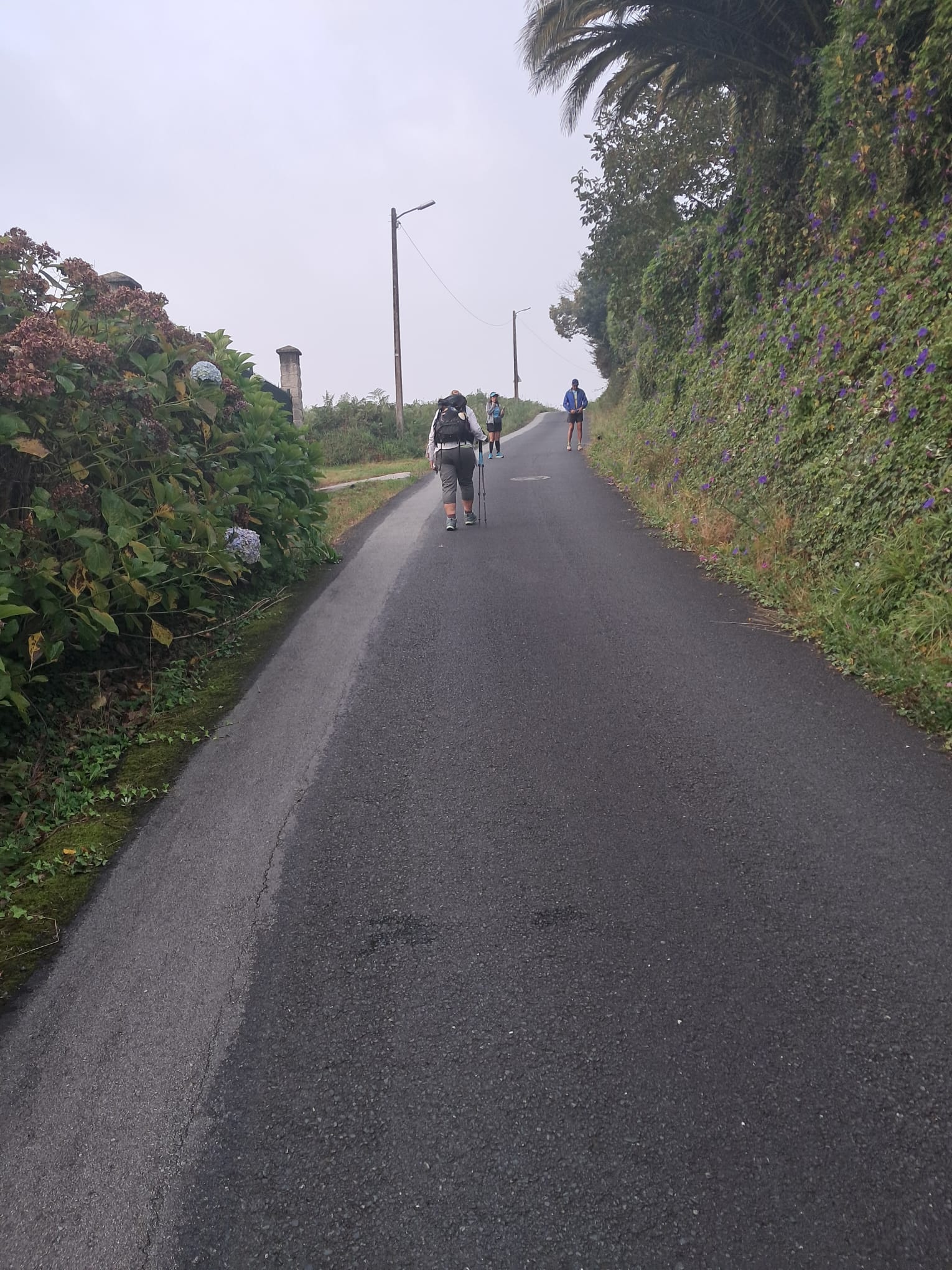 Het meest heb ik genoten van de natuur en buiten zijn in de natuur. Me verwonderd over de vele bossen met eucalyptusbomen en de vele tamme kastanjes. De weg was er soms helemaal mee bedekt. In het tweede gedeelte zagen we ook veel eiken en maisvelden, terwijl ik maar twee koeien heb gezien. Niet dat alle wegen prettig waren om te lopen, harde ondergrond en naast de snelweg (herrie), maar er kwam altijd wel weer een mooi paadje op de route.