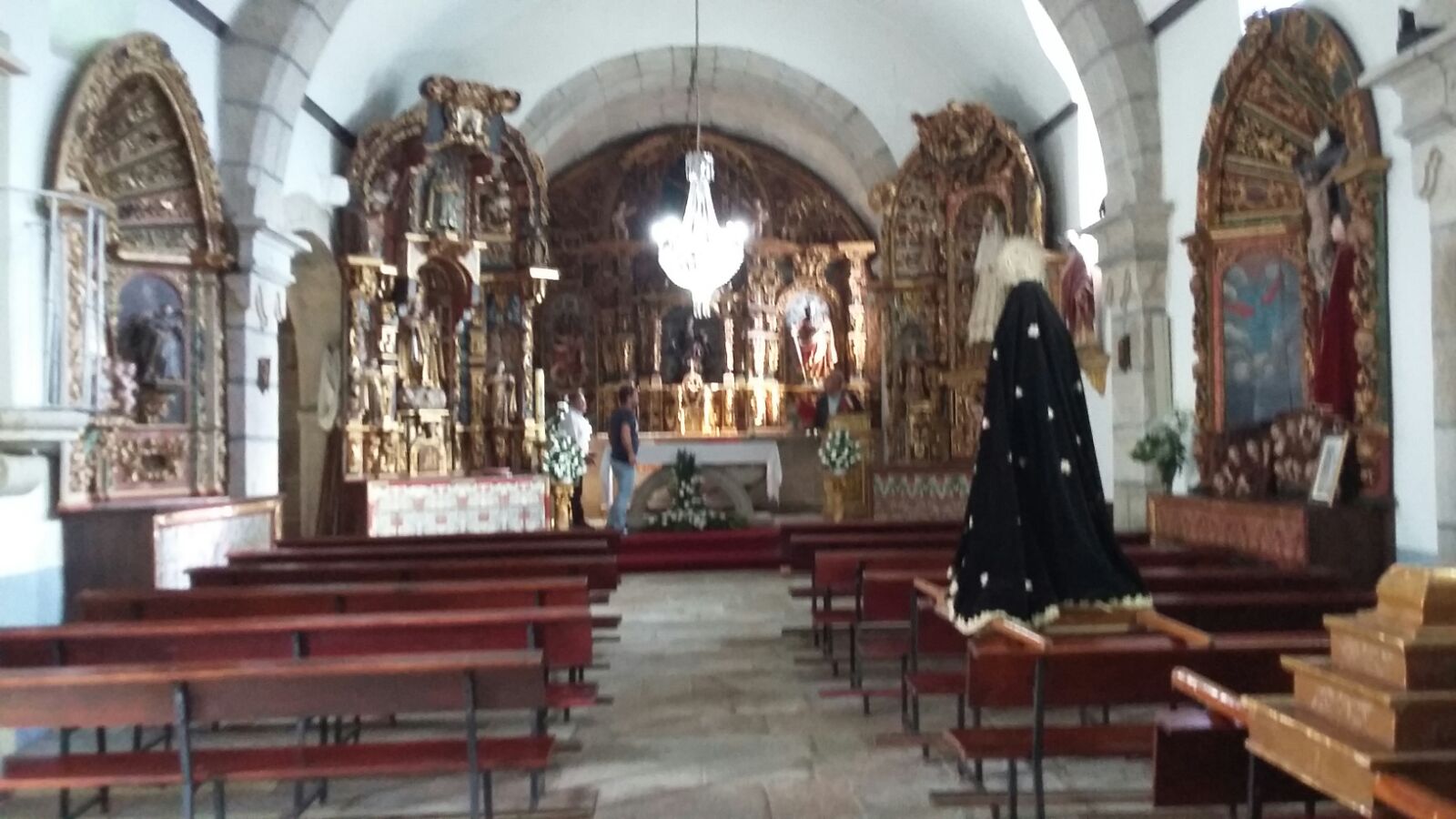 Oei oei, ik schiet om vijf over acht wakker. Mijn twee kamergenoten slapen dan nog. Van de zeven bedden hadden we er maar drie in gebruik en allemaal langslapers dus. In een cafeetje eerst met een ontbijtje echt wakker worden en goedgemutst op pad. Het doel is Redondela, een kleine zestien kilometer, maar wel met klimmen en dalen. Het is zondag en binnen twee uur ben ik in Mos. Ik heb geluk, de mis is net begonnen en in het kleine kerkje krijg ik dan ook het zondagsgevoel. Voor een processie worden er twee draagbaren klaargezet. Het maakt mij erg nieuwsgierig maar helaas, ze worden in een busje geladen.