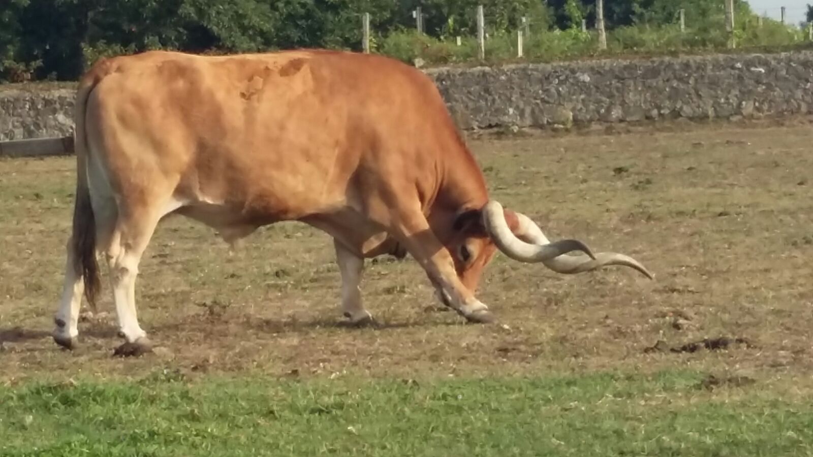 Voor mij loopt een oude herder met een paar schapen en een koe. Deze koe heeft grote horens, de weg is smal dus blijf ik er maar een beetje achter. Dat vindt de man leuk en een grote tandeloze grijns is mijn dank. Even later komt hij naast mij lopen en vraagt waar ik vandaan kom. Als ik Holland zeg, begint hij nog meer te grijnzen en voordat ik het weet krijg ik twee dikke zoenen op beide wangen – smak smak. Hij maakt plaats en ik kan verder. Ik hoop dat ik niet zijn snoepje van de week en zijn gebed was.