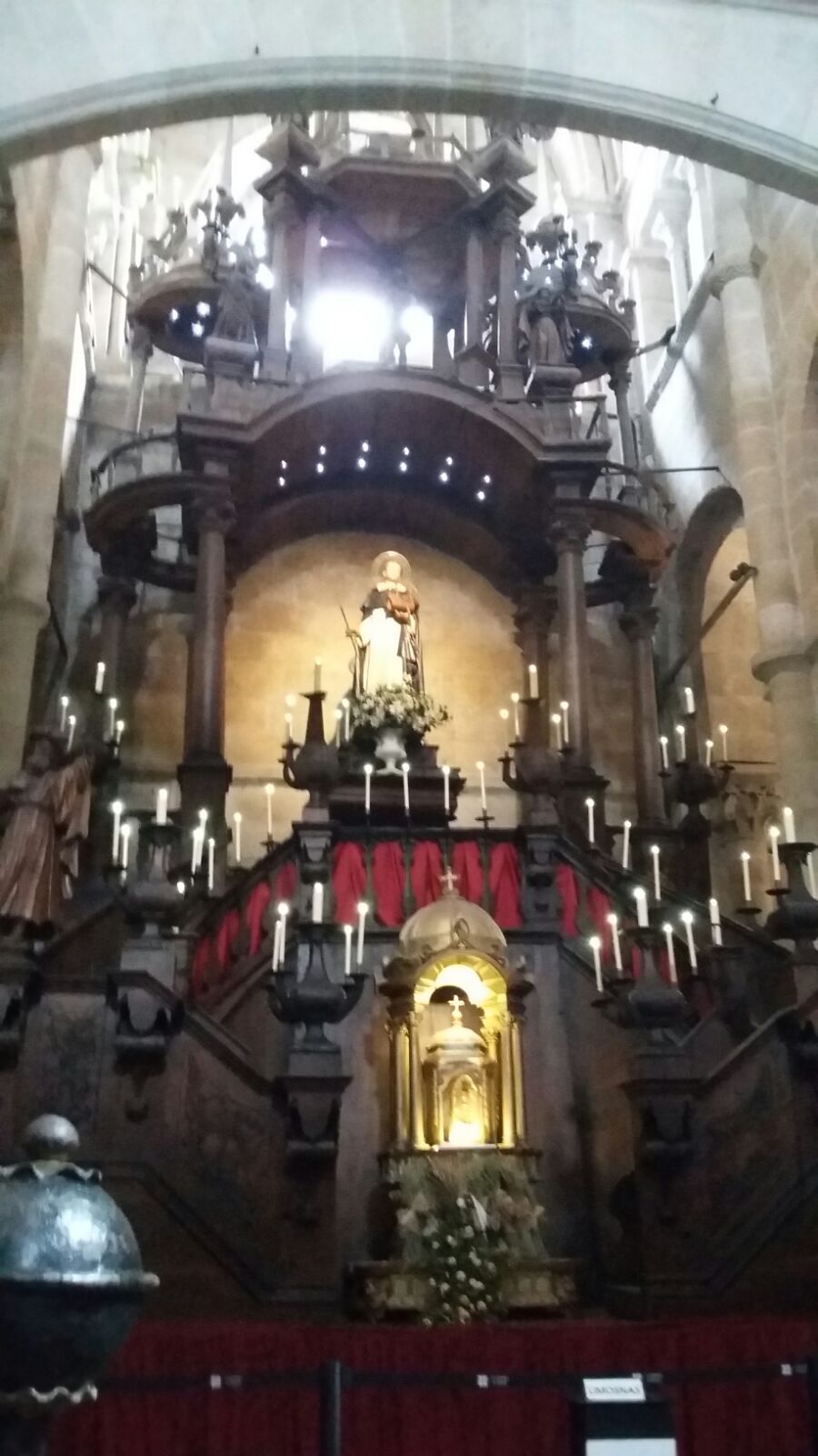 Ik loop nu voor het eerst door de hele kathedraal. Ja helemaal, want ik besluit om het compleet te maken. Nog eens door de heilige deur te gaan en Jacobus hoog op het altaar nog eens te bezoeken. Waarom? Misschien omdat iedereen het één keer doet. Ik wil geen automatisme. Vrede heb ik al gesloten, dus deze keer gewoon privé.
