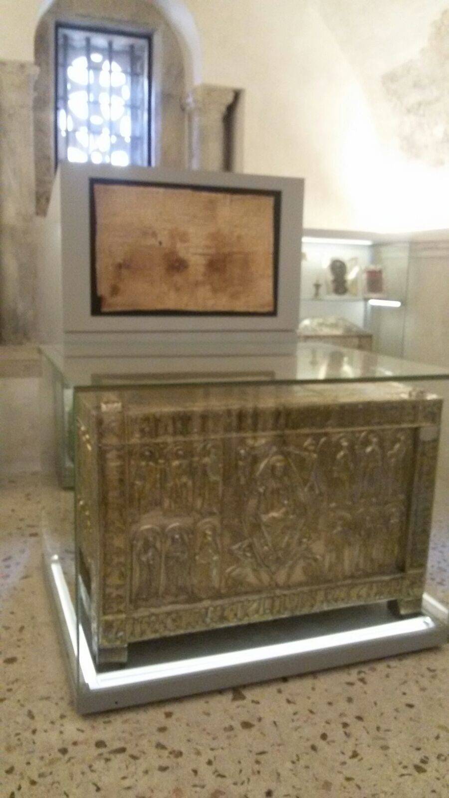 Na een tijdje rust is het tijd om de stad te bekijken. Nog geheel omgeven door de oude stadsmuren en poorten zeker de moeite waard en de kathedraal is van buiten prachtig. Van binnen ook, maar helaas, je kunt niet voor het hoofdaltaar komen. Deze is alleen vanaf de zijkant en door glas gedeeltelijk te zien. Ik baal behoorlijk, want de schilderingen zien er heel mooi uit. Ik loop naar het museumgedeelte voor een stempel en daar neemt een mevrouw mij mee naar de sacristie. En dan het wonder. Ze vraagt of ik soms even voor het hoofdaltaar wil zitten en bidden. Ze opent een deur voor mij en in volle glorie kan ik het altaar aanschouwen. Het is magnifiek en ik raak ontroerd. Dit is wat ik nodig heb. Ik heb namelijk weer last van mijn been; met zo’n teken moet het wel goed komen.