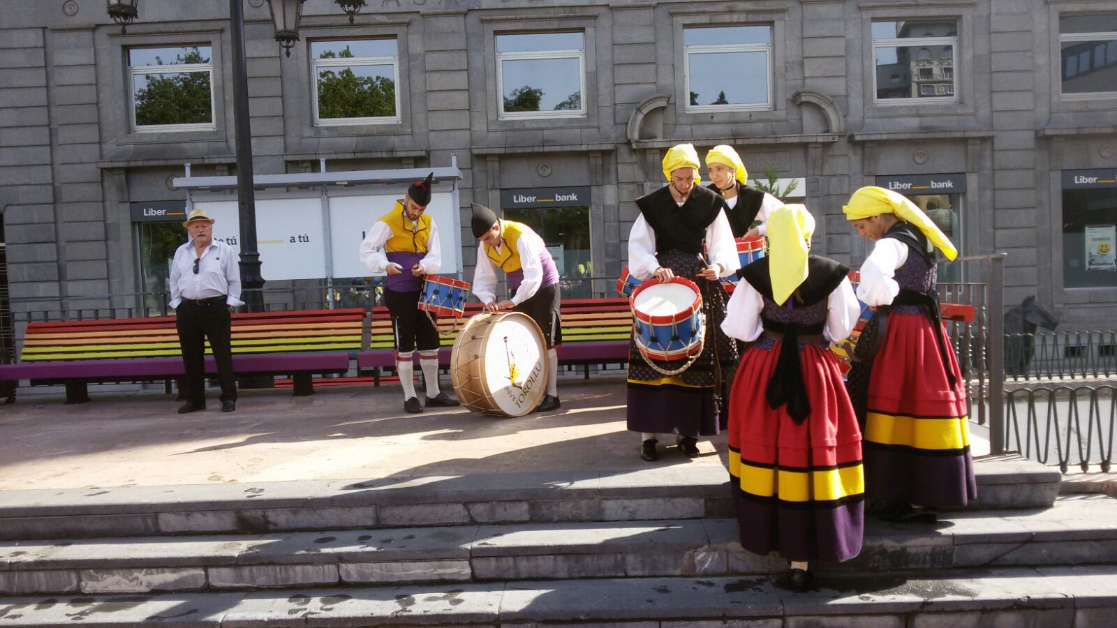Op aanraden ga ik niet direct de route volgen maar via de berg eerst de twee kerkjes San Miguel de Lillo en Santa Mara del Naranco bezoeken. Maar eerst geniet ik in Oviedo nog van diverse muziekgroepen en mooi geklede vrouwen bij de diverse kerken. Hup, niet treuzelen, op weg!