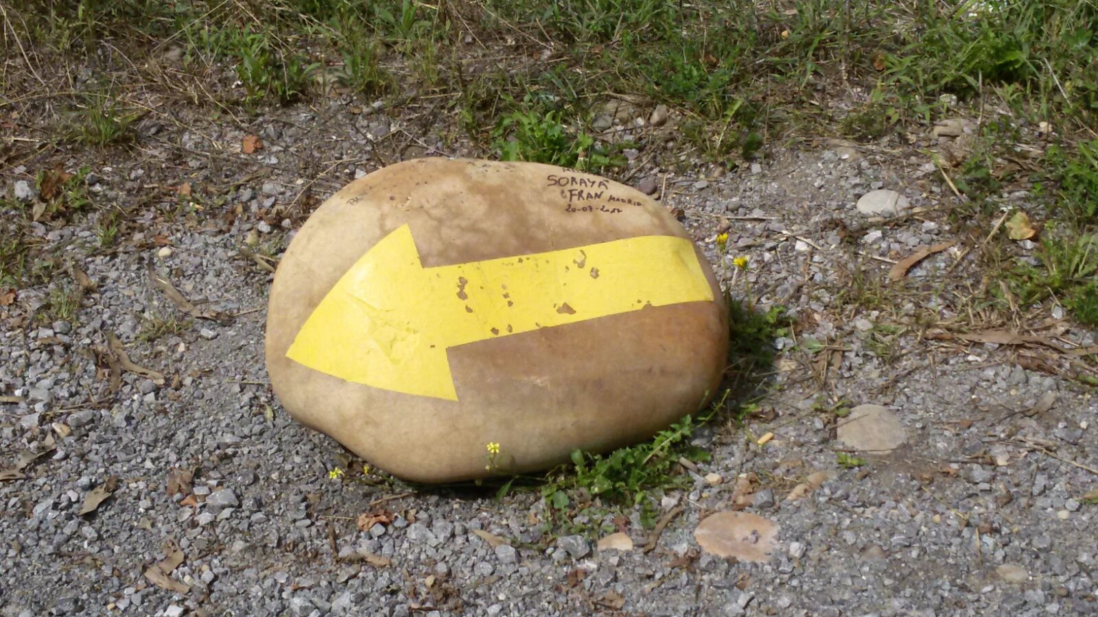 Ik verbaas mijzelf. Het lukt mij om aan de hand van mijn routeboekje op de originele route uit te komen. Hoera, daar zijn de schelpen en gele pijlen! Ik maak kennis met een stel uit Zuid-Afrika. Ons Nederlands is toch te verschillend en wij spreken dus maar Engels. ‘s Avonds in Escamplero ben ik herenigd met vliegtuig- en bus-medepelgrims.