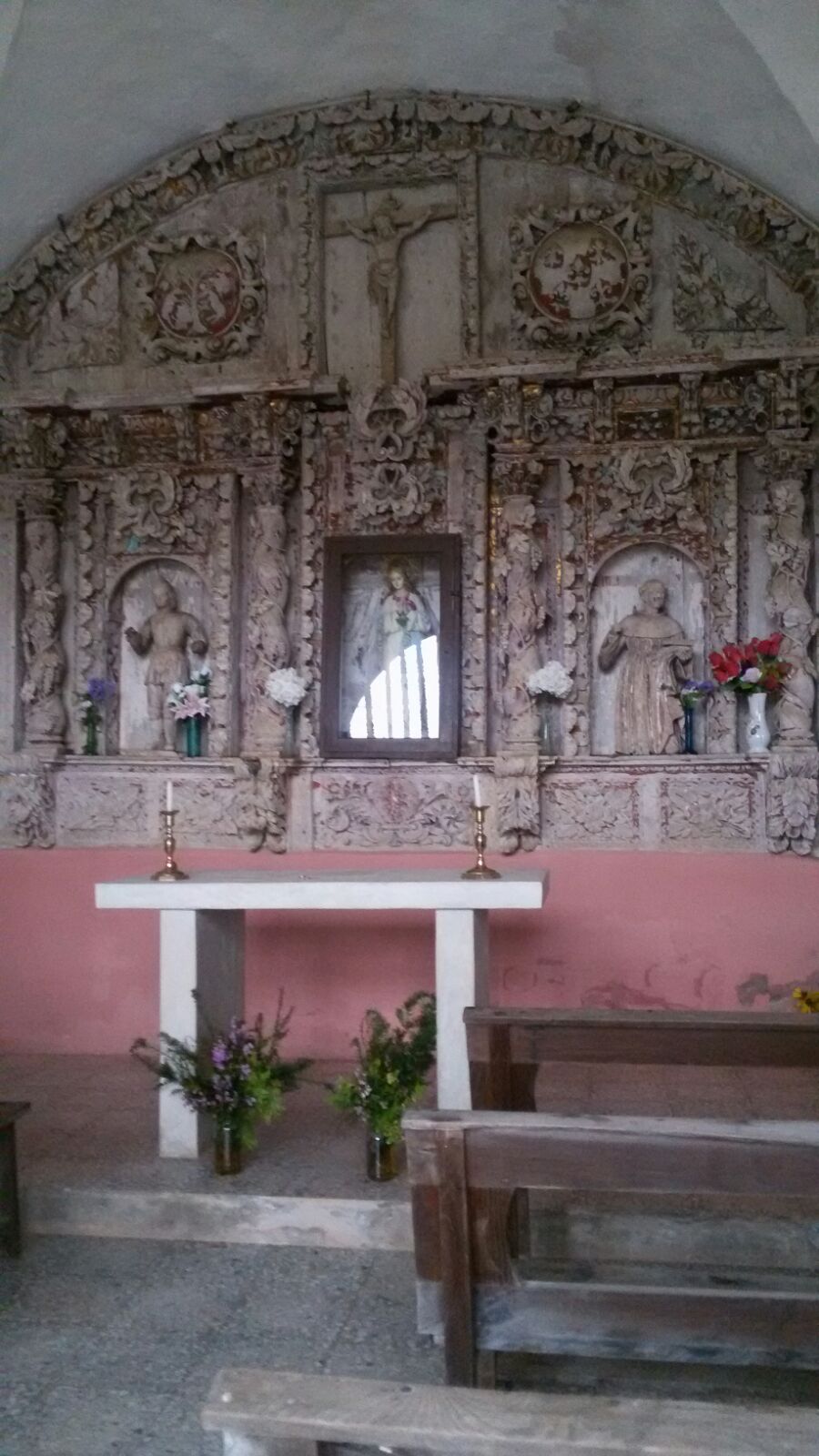 Dan gauw ook Azura uit en weer genieten van de geur van de heerlijke eucalyptusbomen. Ik moet eerlijk zeggen dat ik verwacht had dat het veel drukker zou worden nu twee routes zijn samengegaan, maar dat valt reuze mee en ik zie nog steeds veel bekenden o.a. een jong stel uit Israël. Verder herken ik niets van de route van drie jaar geleden. Het is net of ik hier voor het eerst loop. Alleen het kerkje met het mooie Jacobusaltaar is bekend.