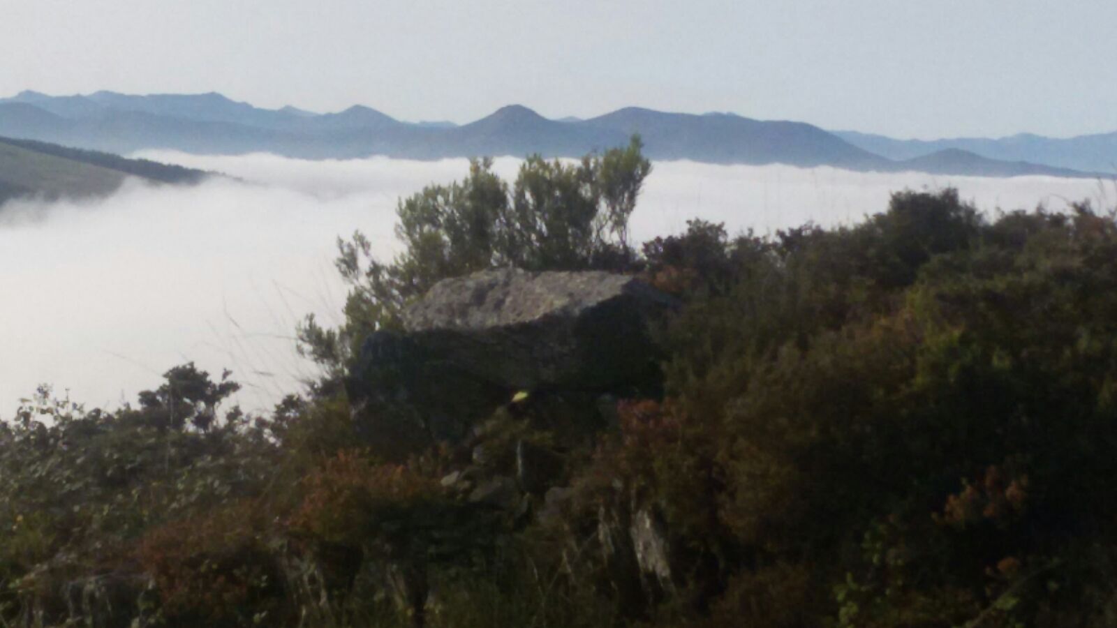 Ik loop langs mooie bloeiende heide en vergezichten en baal. Ik kan natuurlijk later altijd de foto’s van mijn camera erbij zetten maar nu dus even niet. Huppekee, voor vandaag 8.5 kilometer naar La Espina, een makkie en weinig hoogteverschil. Teveel een makkie dus. Aangekomen bij Davids herberg, waarvoor ik koos voor de sfeer, besluiten Samite en ik toch maar door te lopen en dat betekent nog 11,3 km tot het stadje Tineo. Onderweg gelukkig een paar keer van die handige plekjes met stoelen en automaten. Ik dwaal en mijmer en dan ineens een geschreeuw, zowel voor mij als achter mij! Ik schrik mij suf… Ojee, ik heb een afslag gemist en weet nu zeker: Jacobus past op mij, ook weer op deze camino. Ik haast mij snel terug.