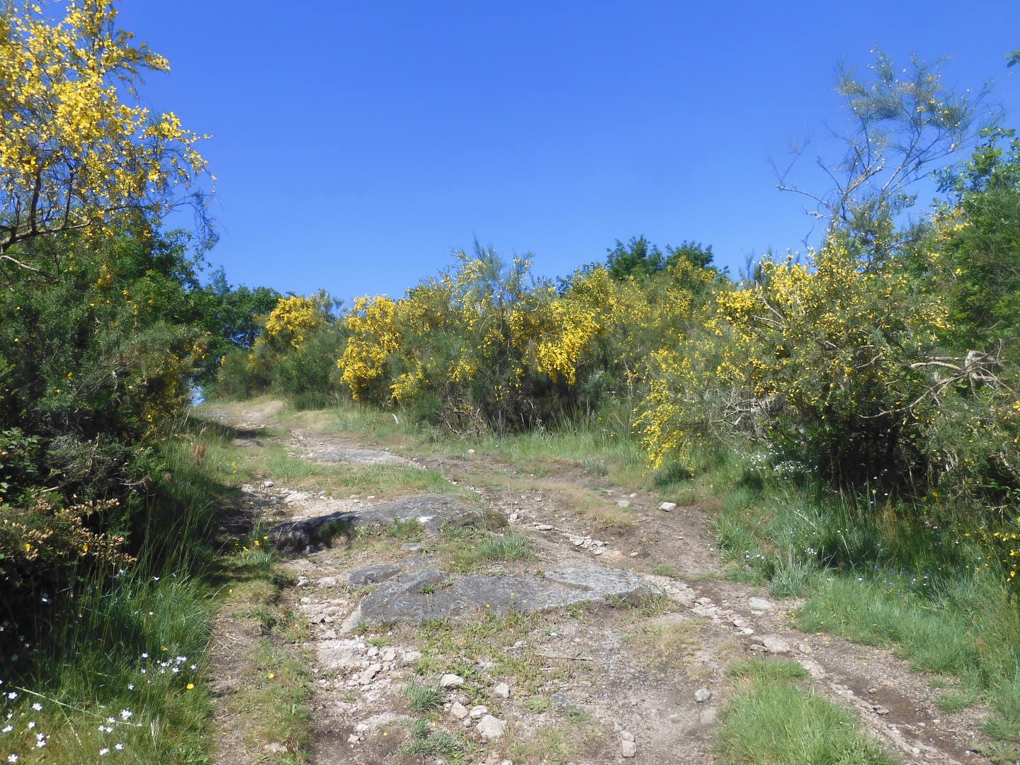 Het volgende dorpje heeft een waterbron. Een bewoner benadrukt dat ik het echt kan drinken. Het water is heerlijk en ik vul mijn flessen helemaal vol. Dan volgt er nog een stevige klim over en langs rotsblokken. De gele pijl wijst vrolijk waar ik naar toe moet, maar zegt helaas niet hoe. Een lange en moeizame afdaling volgt.