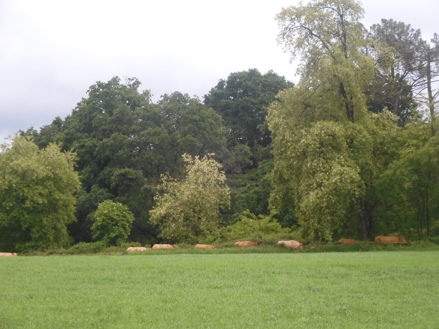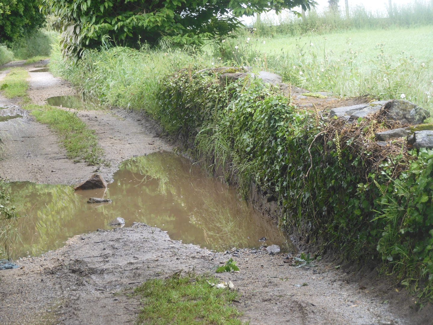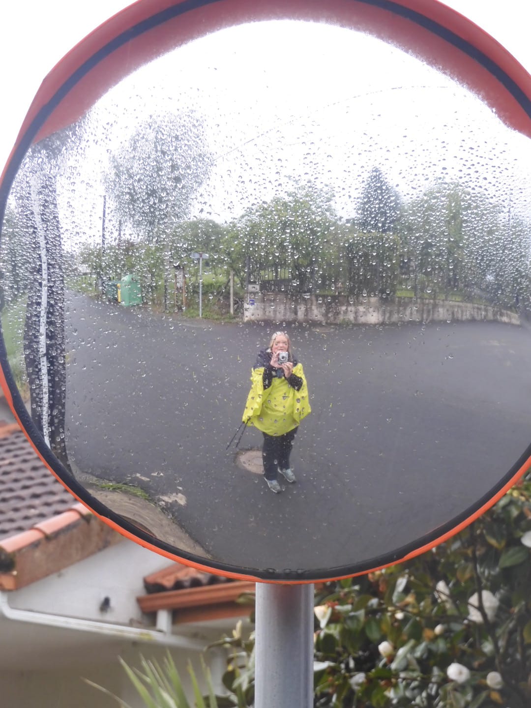 Het is echt ponchodag. De regen maakt alles zó groen. Soms schittert er even en zonnestraaltje door de wolken en glinstert alles om mij heen als diamanten.