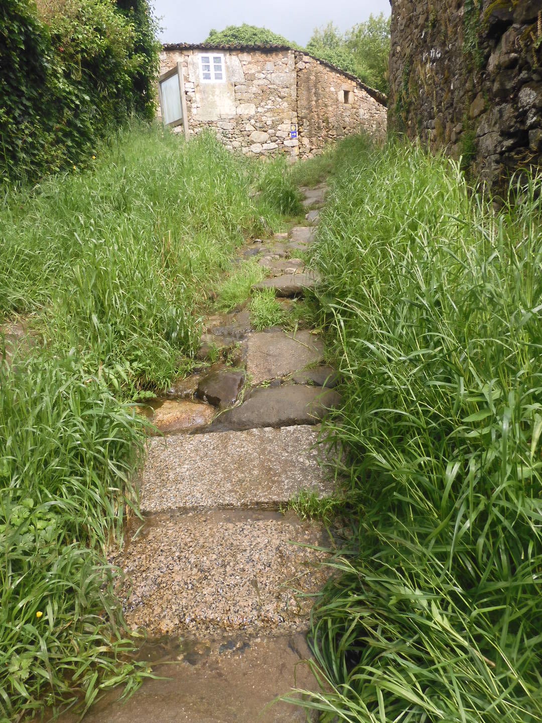 Door de regen heb ik een plan gemaakt. Ik knip de route in dagen van 20 km en zal, als dat lukt, Eerste Pinksterdag in Santiago arriveren. De weersvoorspellingen blijven slecht. Een rustdag nemen om de regen te ontlopen heeft geen zin. Dan liever nu zo snel mogelijk lopen en uit de regen.