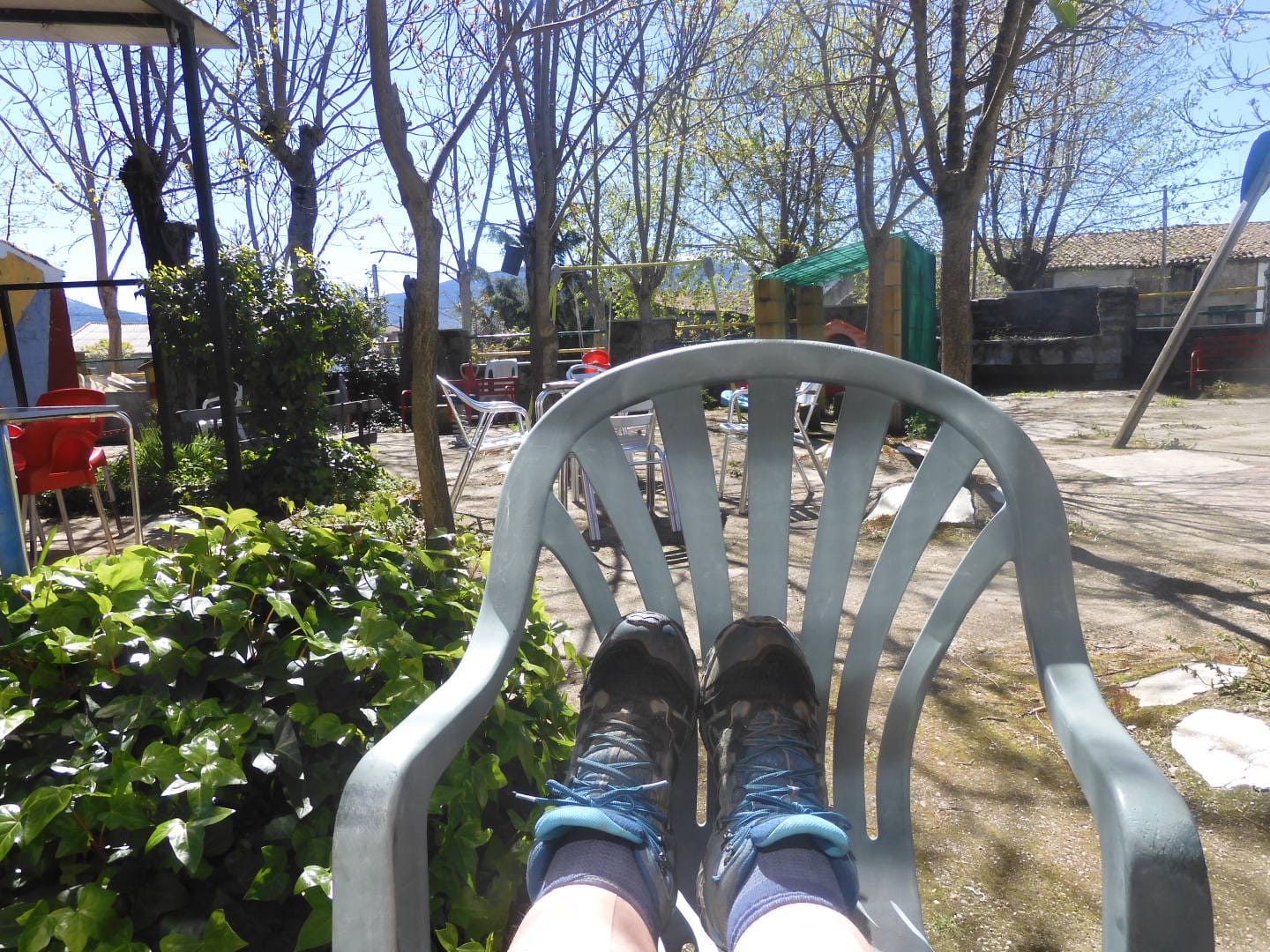 De bareigenaar is behoorlijk op leeftijd en we begrijpen elkaar amper. Ik wil graag iets eten en er liggen heerlijke sardientjes. Hij blijft zijn hoofd schudden, dirigeert mij met drinken en pinda’s naar de tuin. Een mooi plekje in de zon, met poezen en veel vogels. Dan, na een uurtje, gaat de deur open en wenkt hij mij. Een mooi gedekte tafel en heerlijk eten. Hij vond dat ik goed moest eten, goed voor mijzelf moest zorgen. Zo kan het ook.